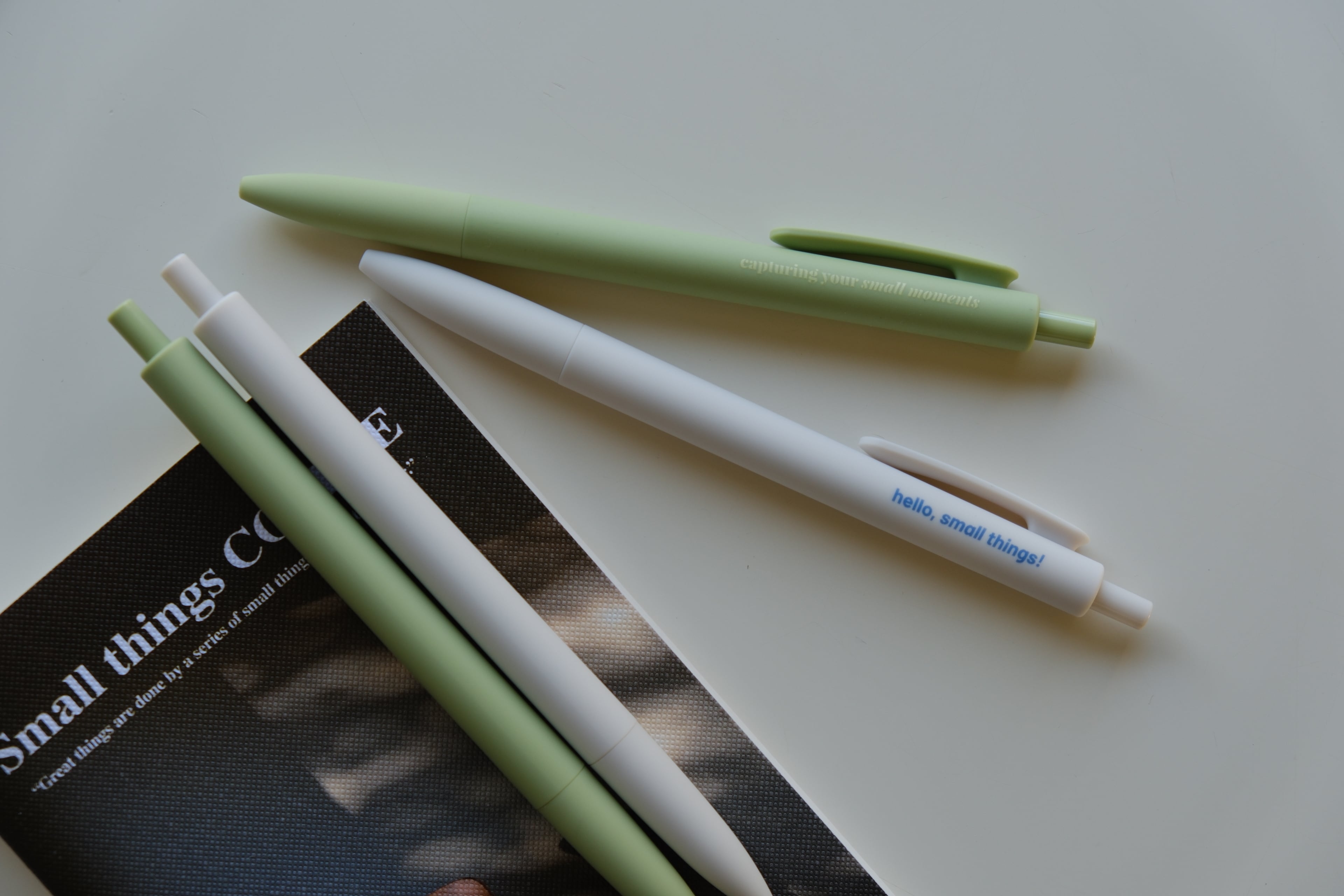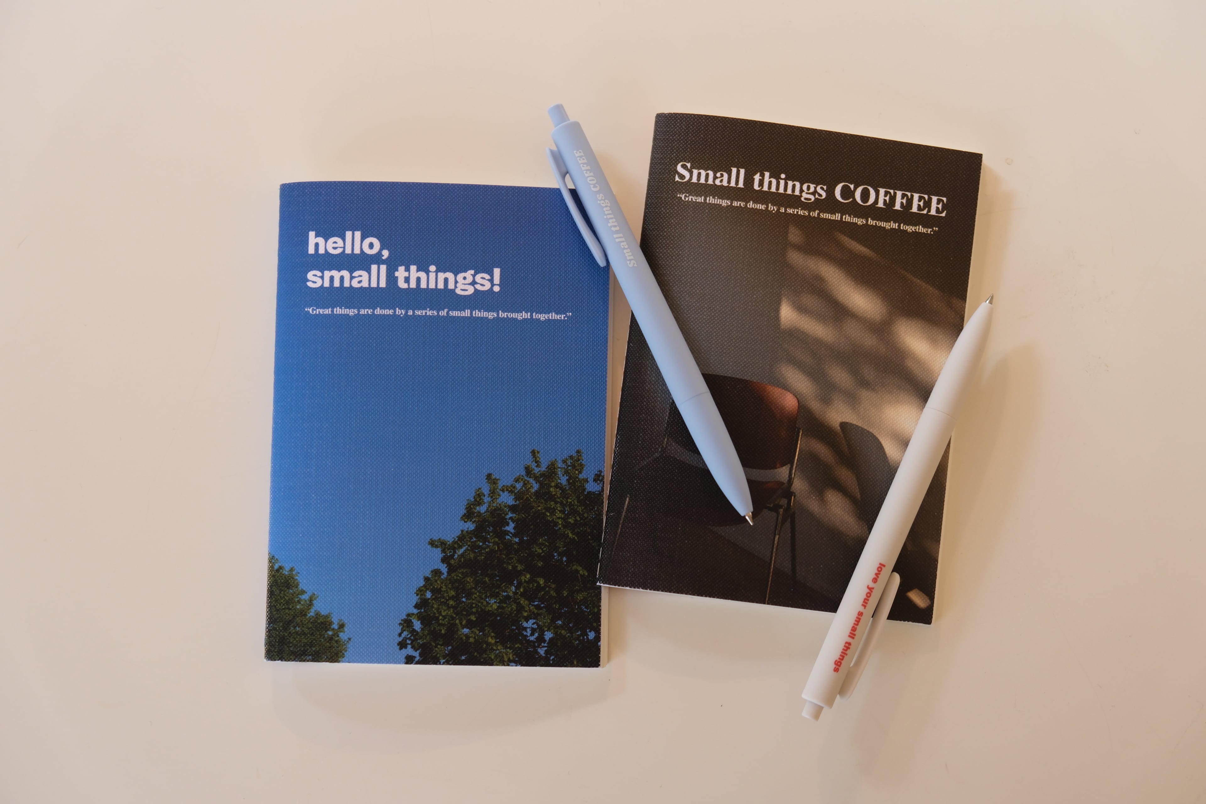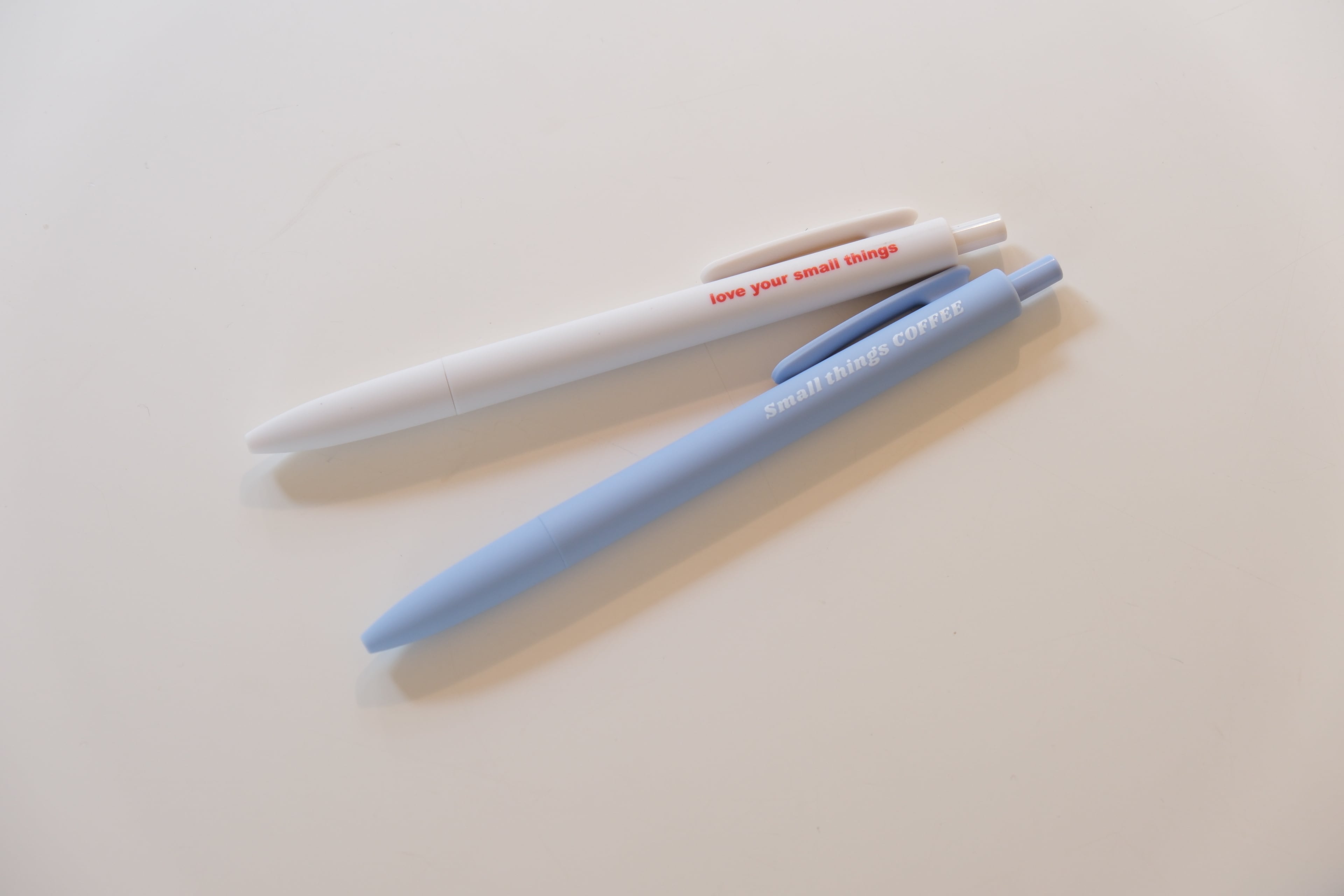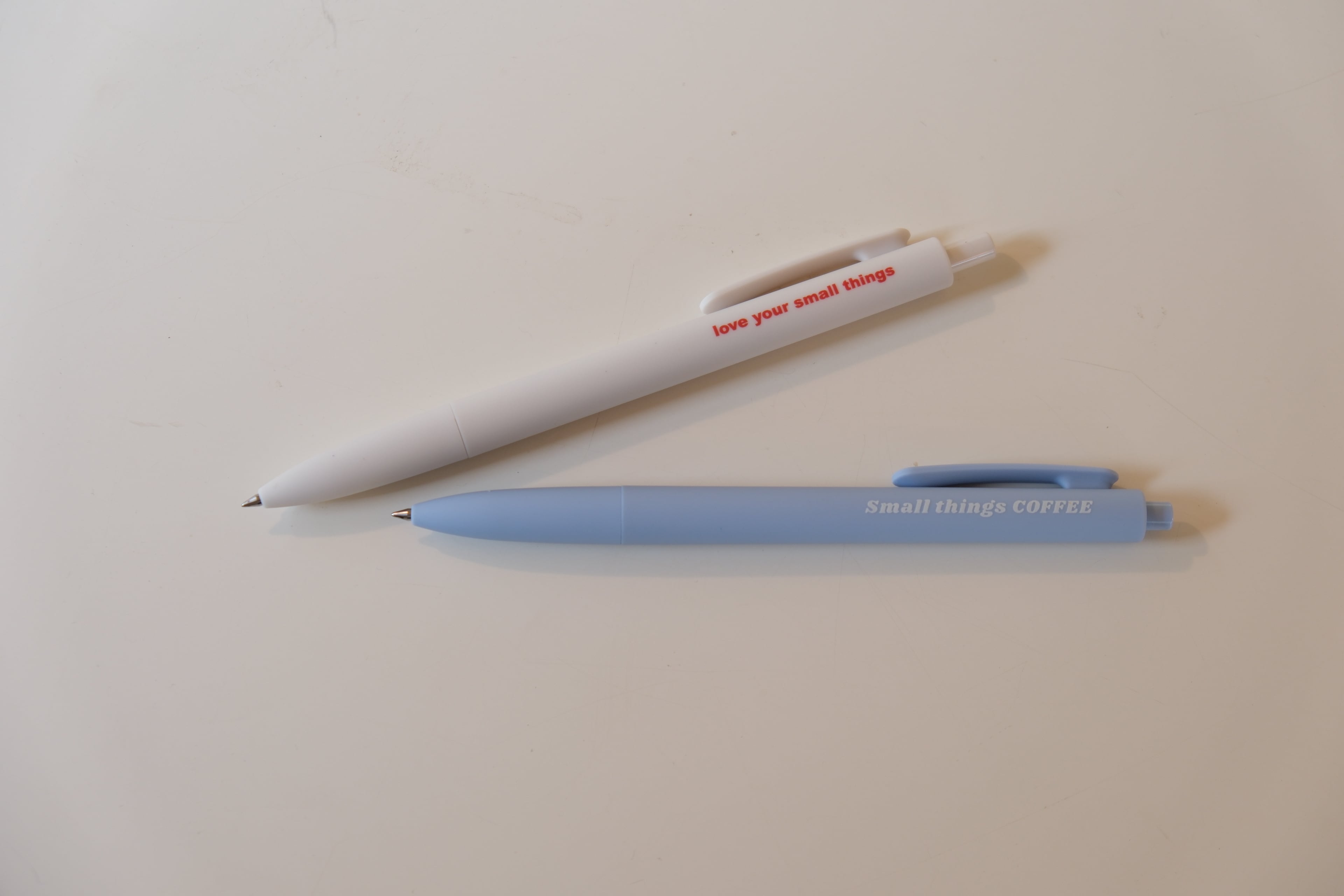 Small things coffeeオリジナルペンを制作しました。マットな素材で書きやすい黒ボールペンです。 (クリーム色の赤い文字のペンは売り切れで青い文字のペンに変更されました)