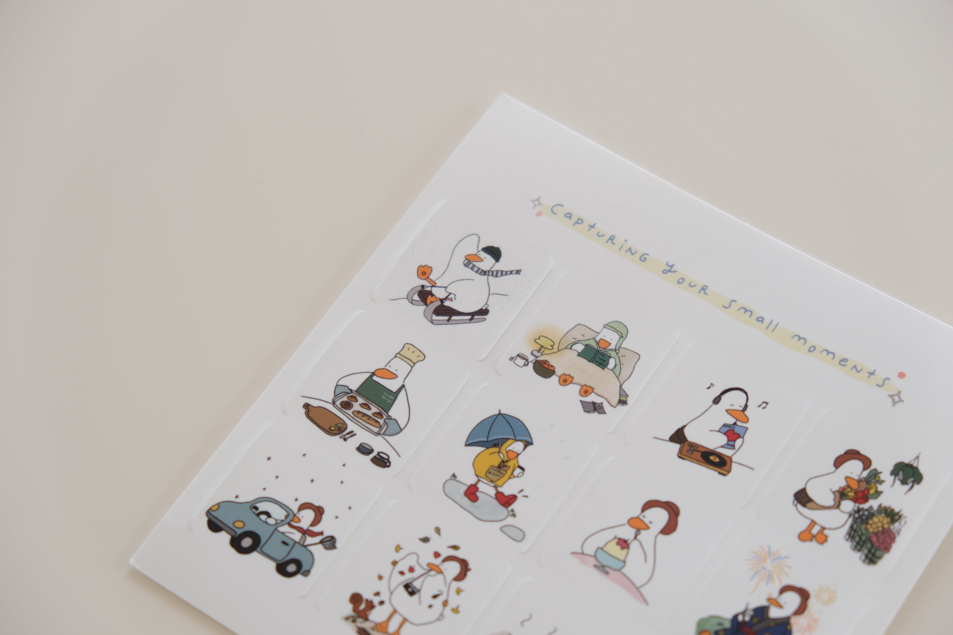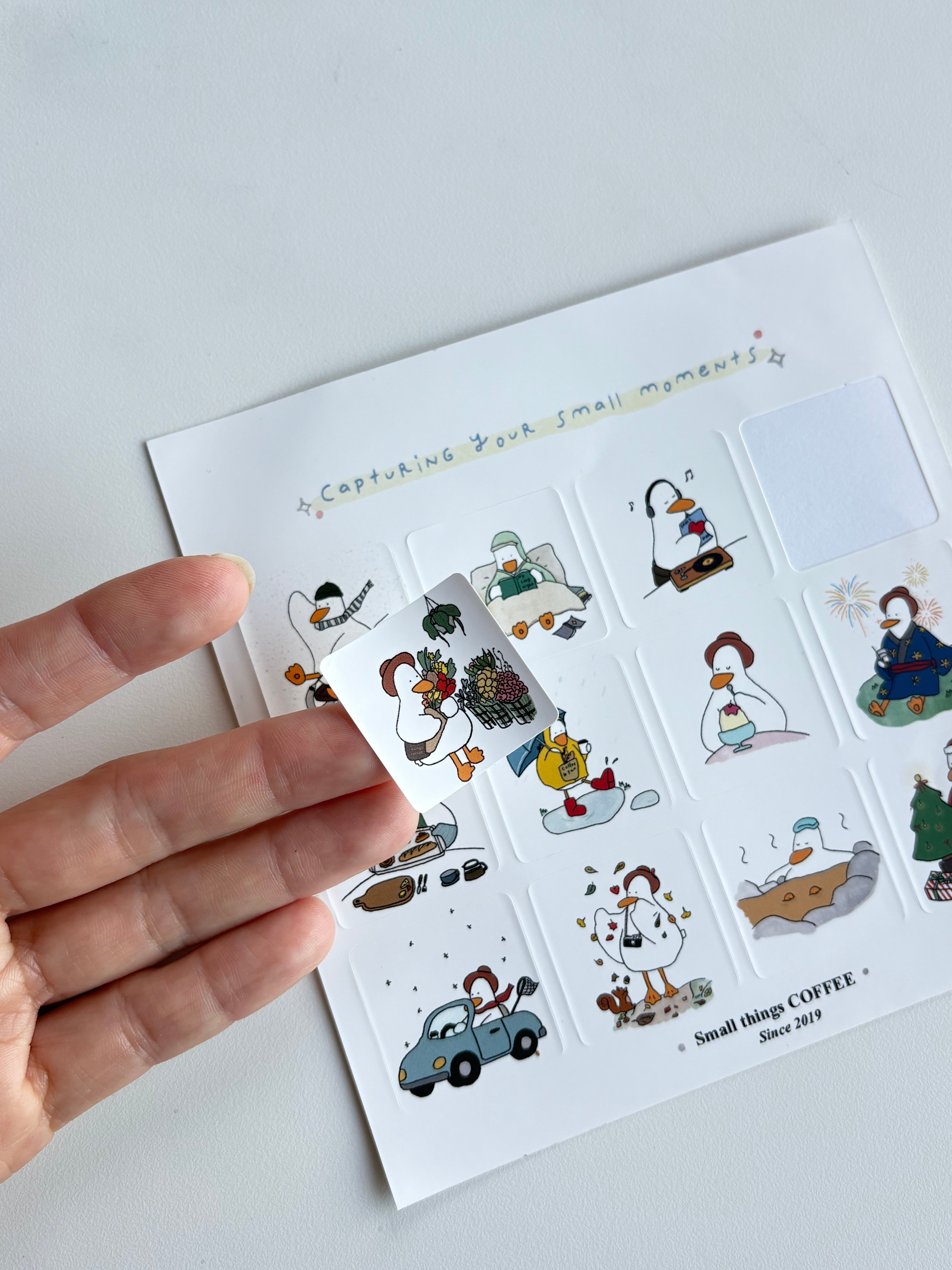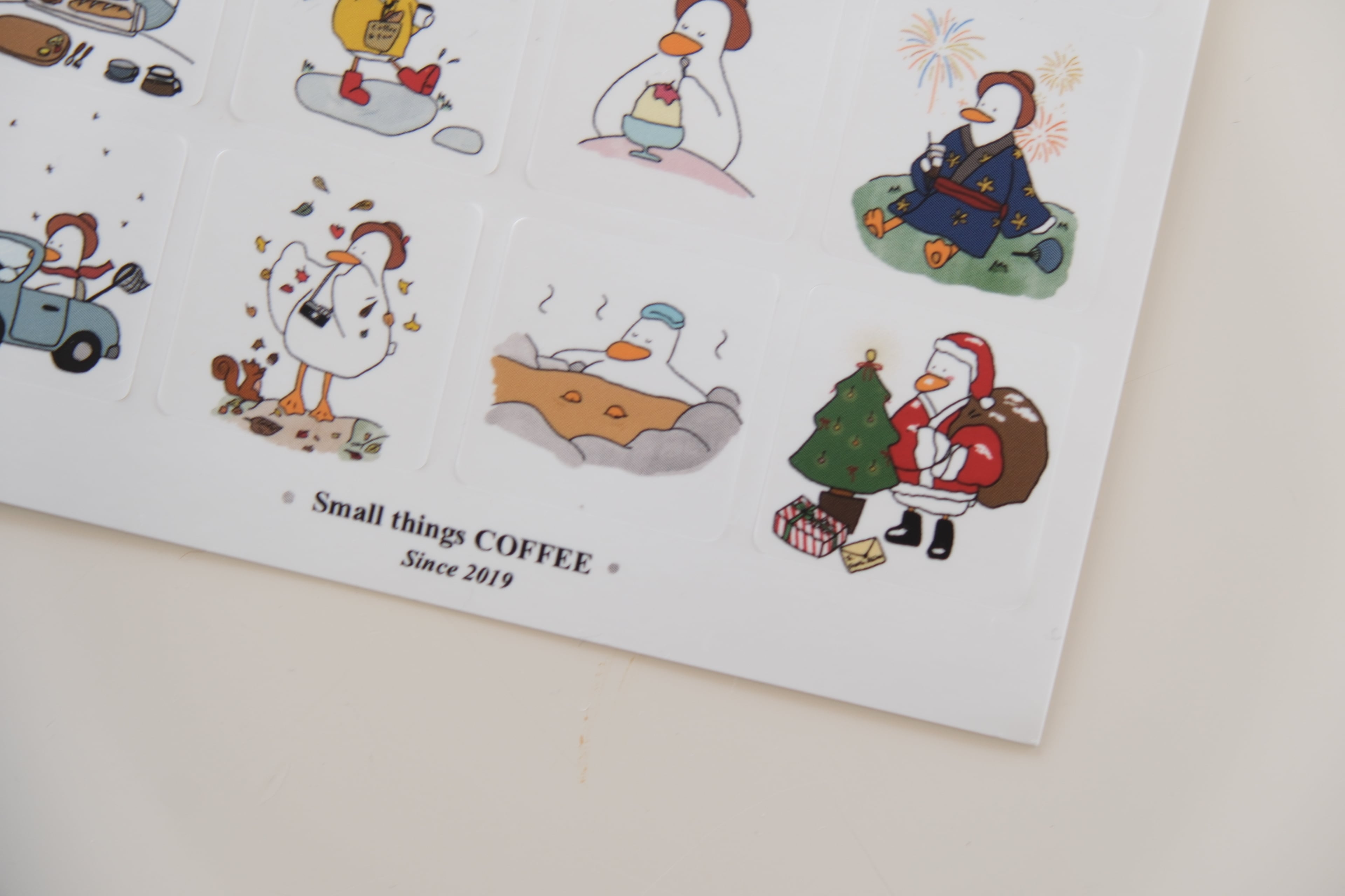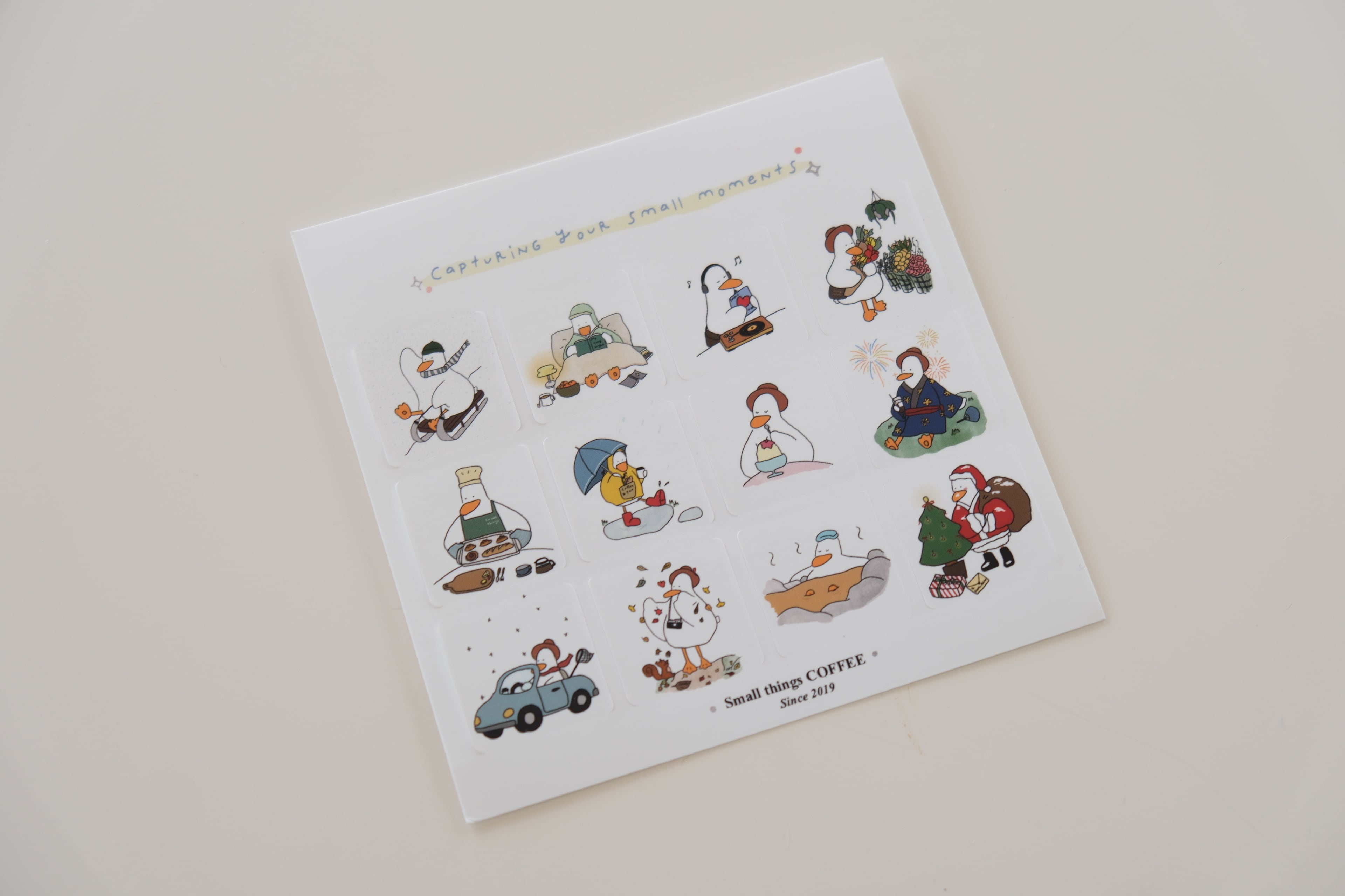 ミニカレンダーのイラストをまとめてステッカーで作りました。マット素材のステッカーで、貼ったり剥がしたりしやすいです。