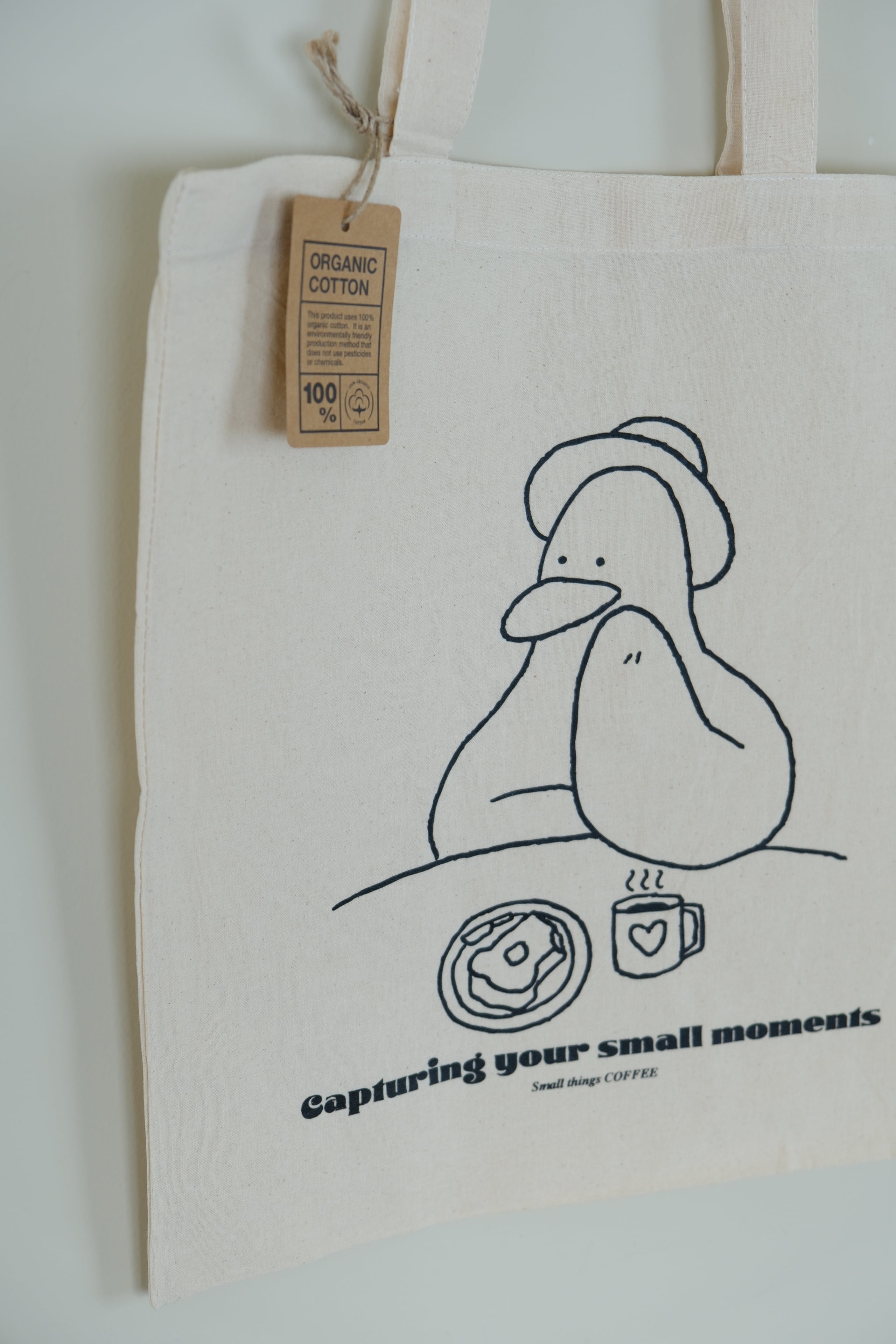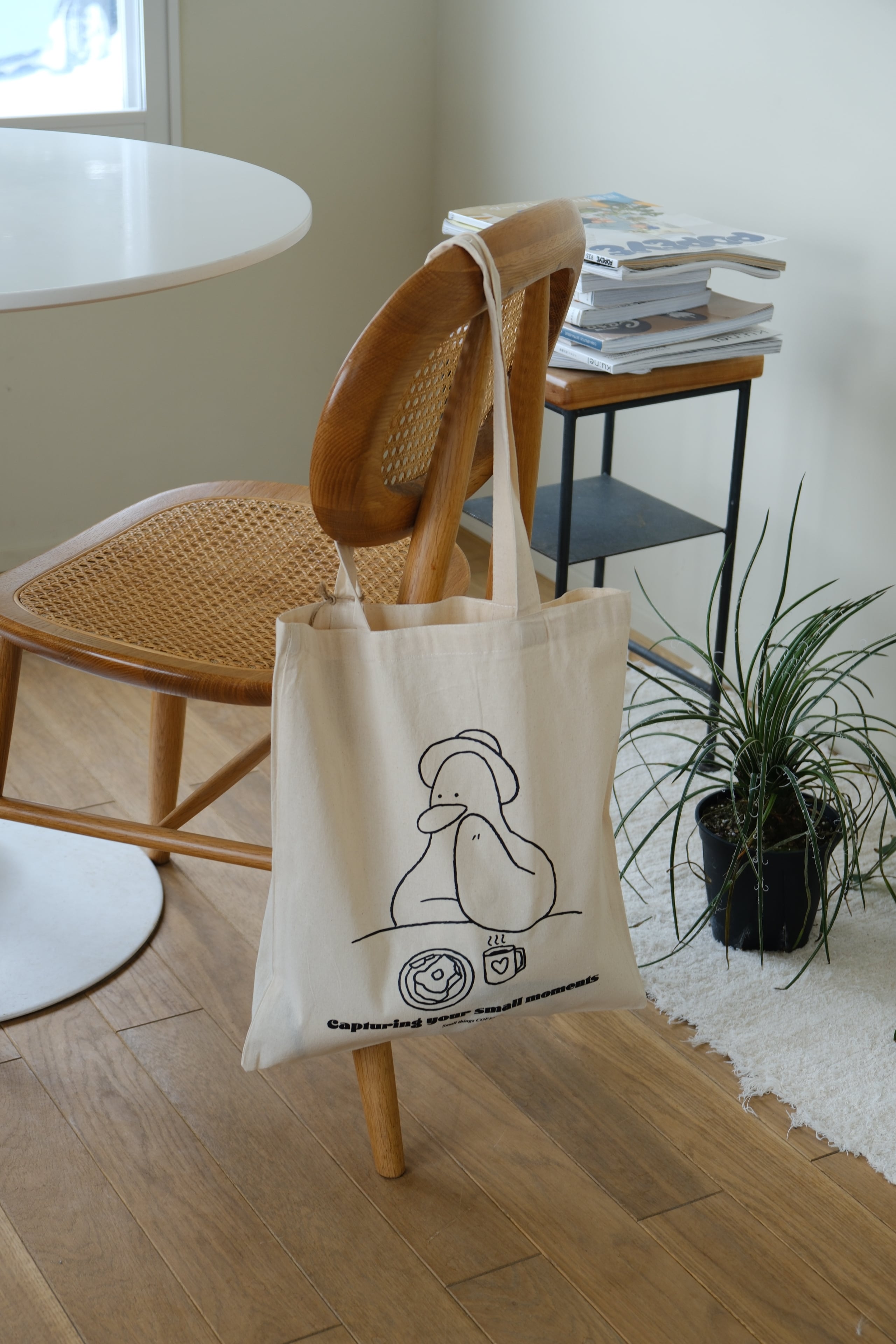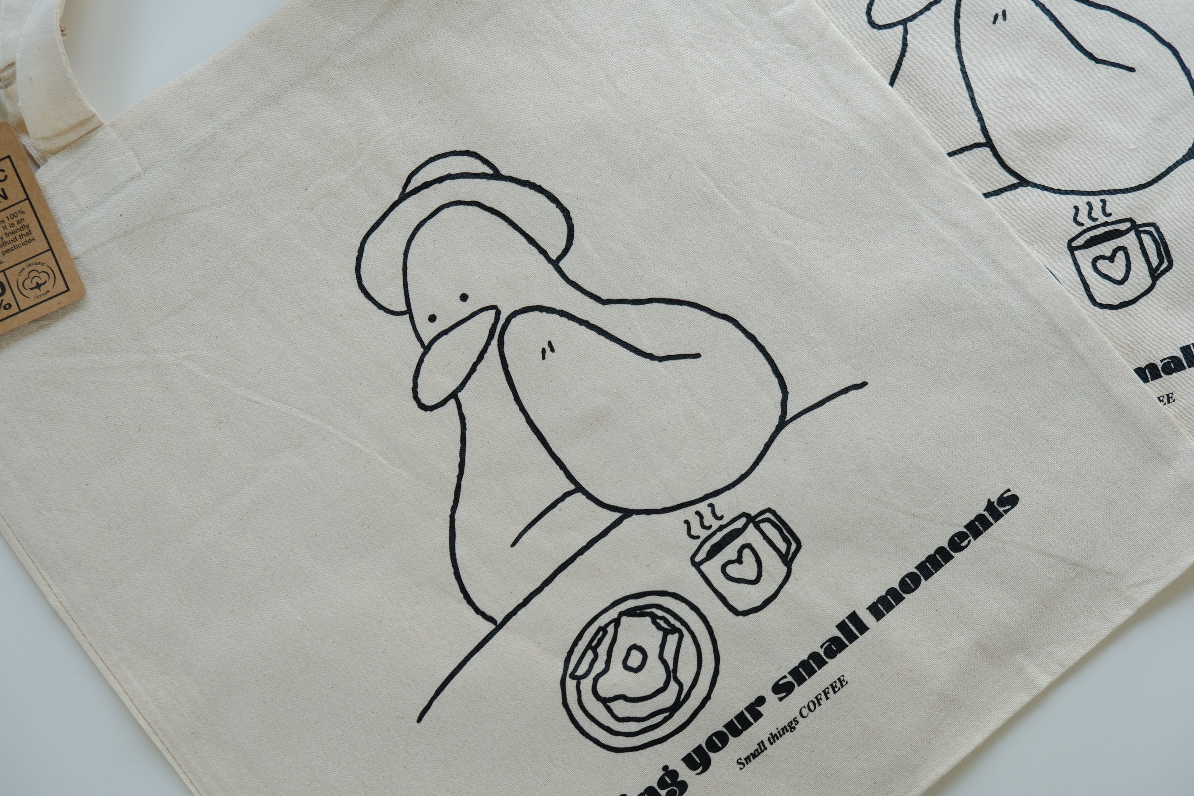 大きめのアヒルコットンバックです。 薄めの生地ですが、しっかりしたオーガニックコットン生地で作ったアヒルプリントを入れました。色は少し濃いめのきなり色の生地を使って制作しました。 季節を問わず、オールシーズン使いやすいバッグです。 size : 36 x 38 color : light beige