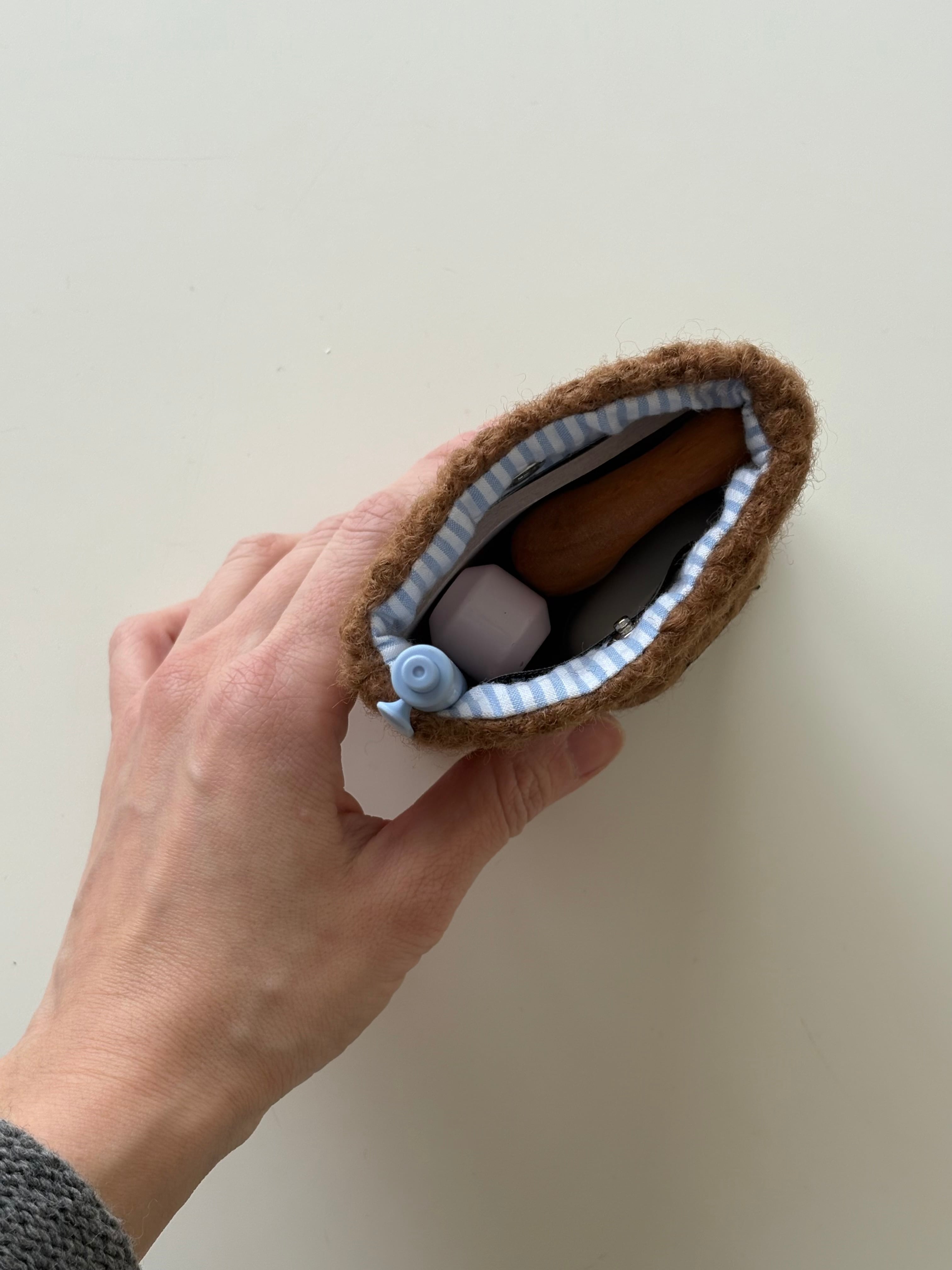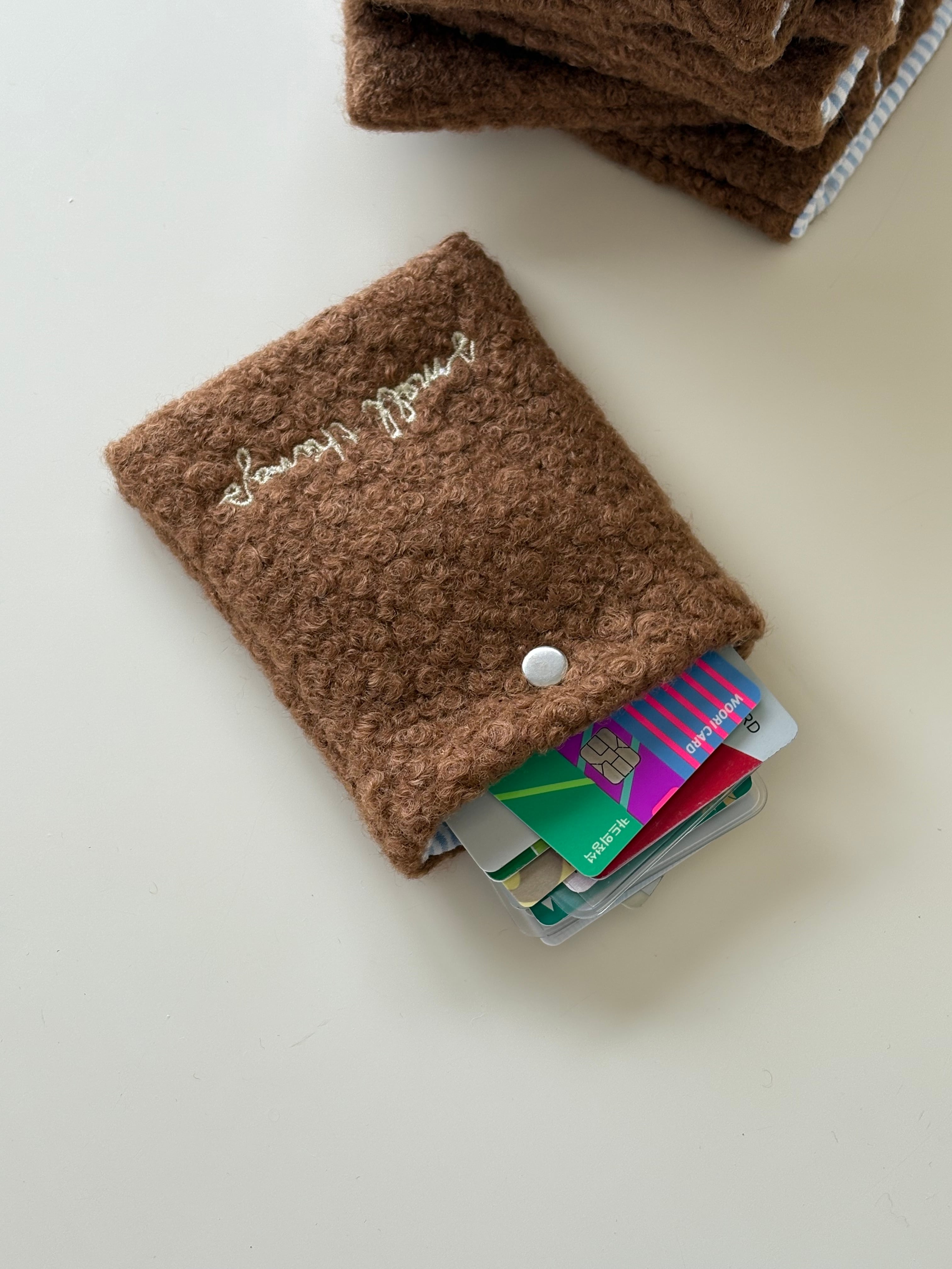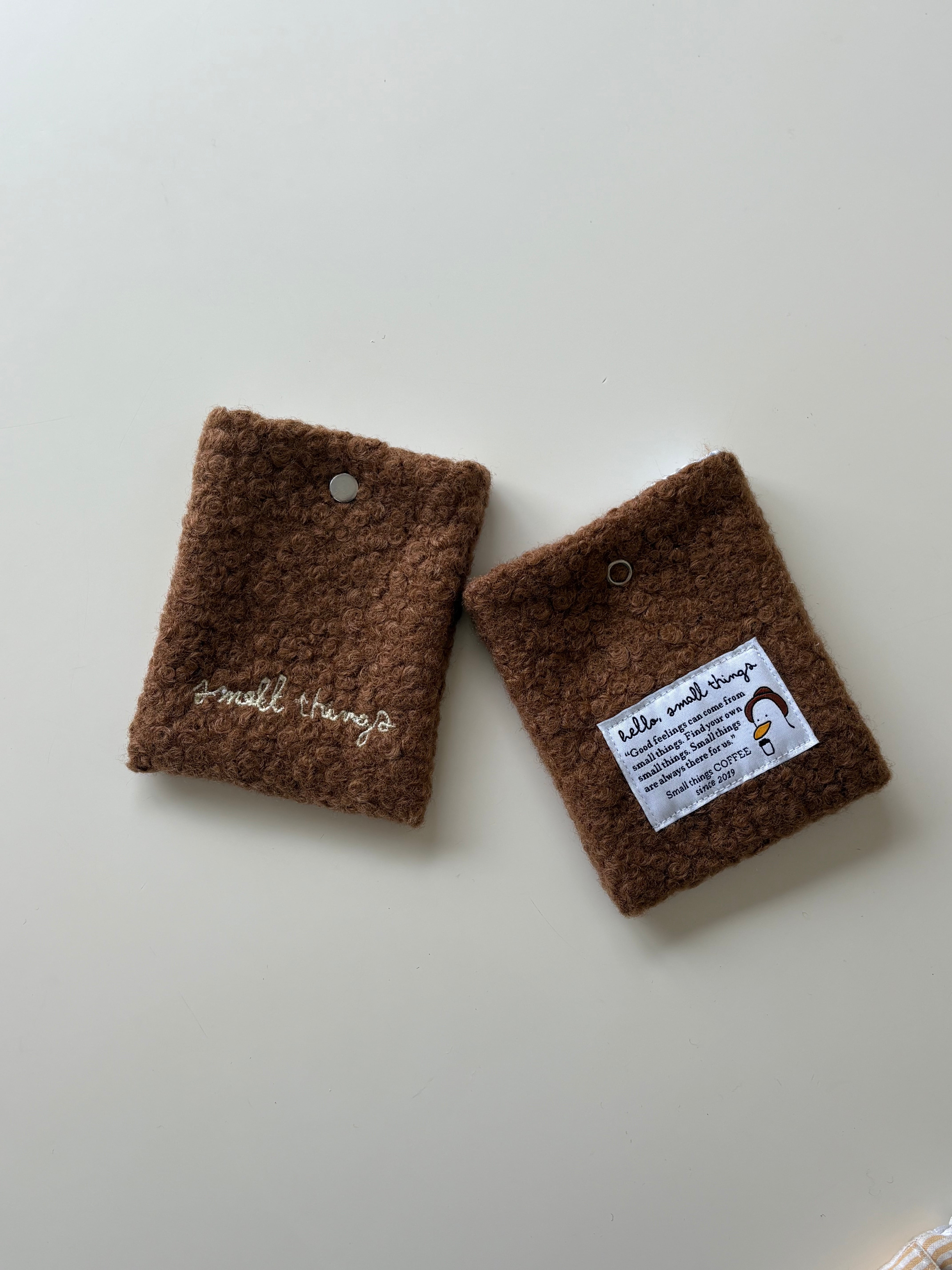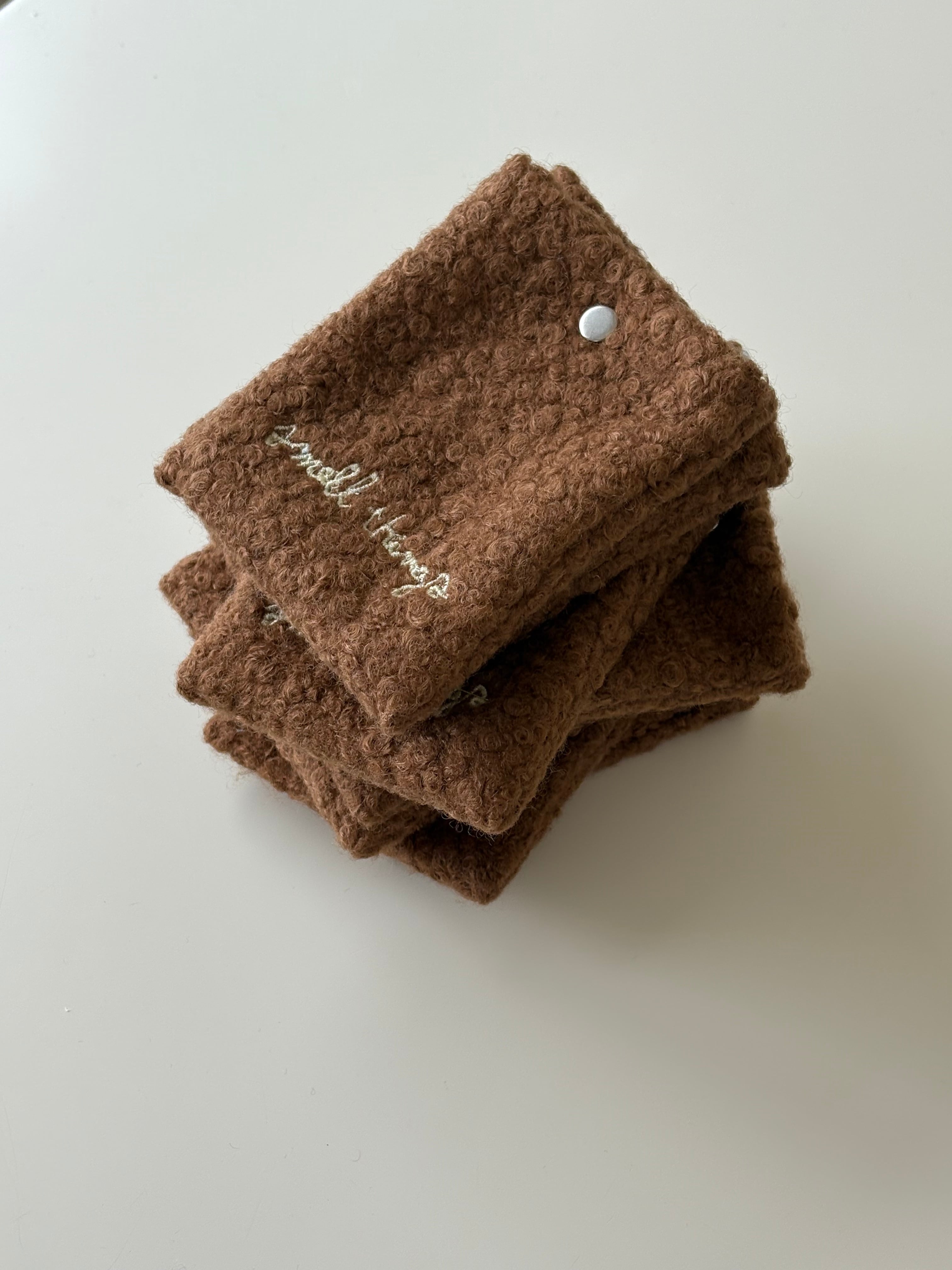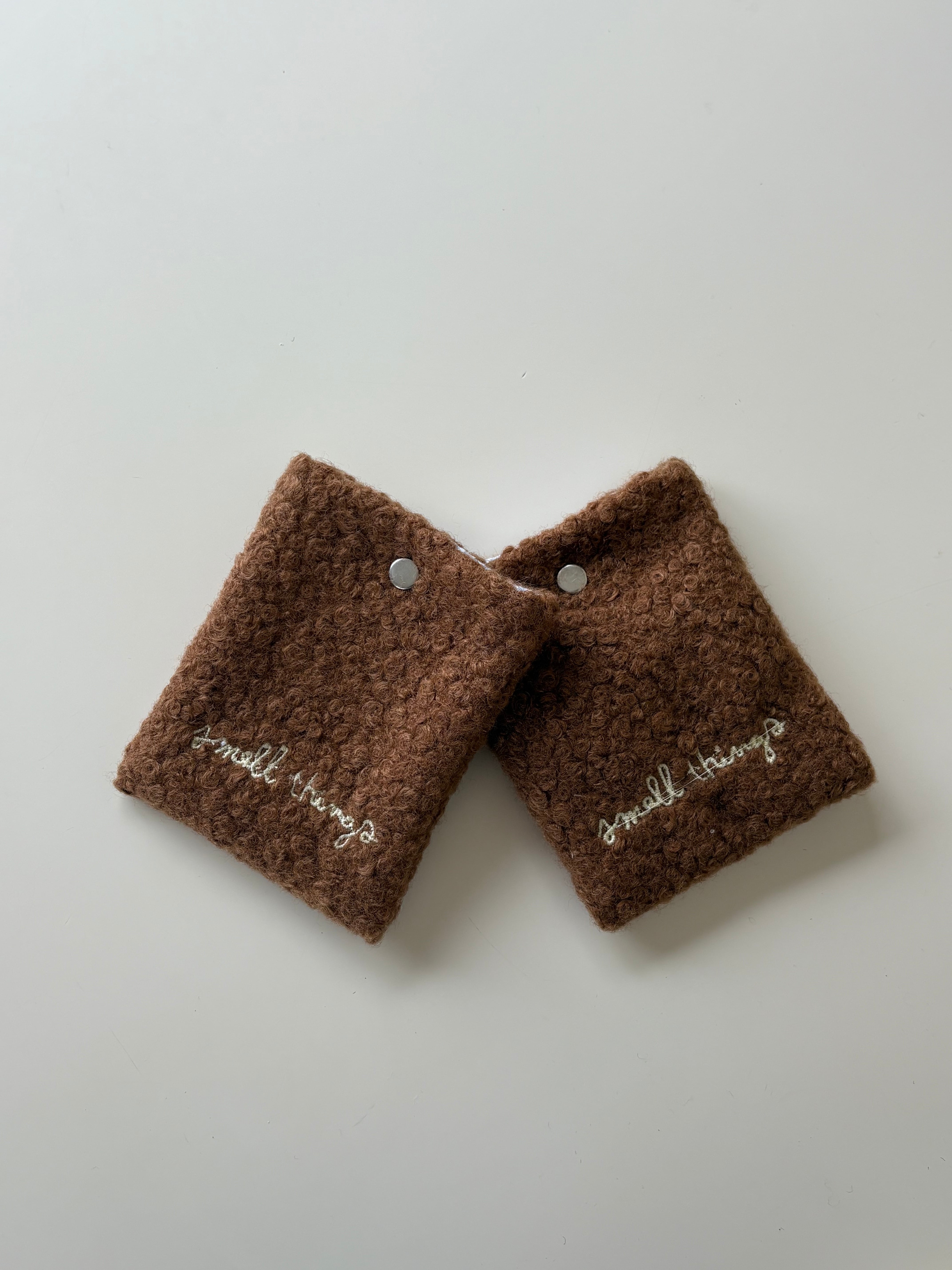 プードルのようなカラーと素材の生地を使って作ったミニポーチです。 カードやお金を入れる用途はもちろん、意外と小さなものがたくさん入るので、バッグにさっと入れて気軽にお使いいただけます。 color : brown size : 10 x 12.5